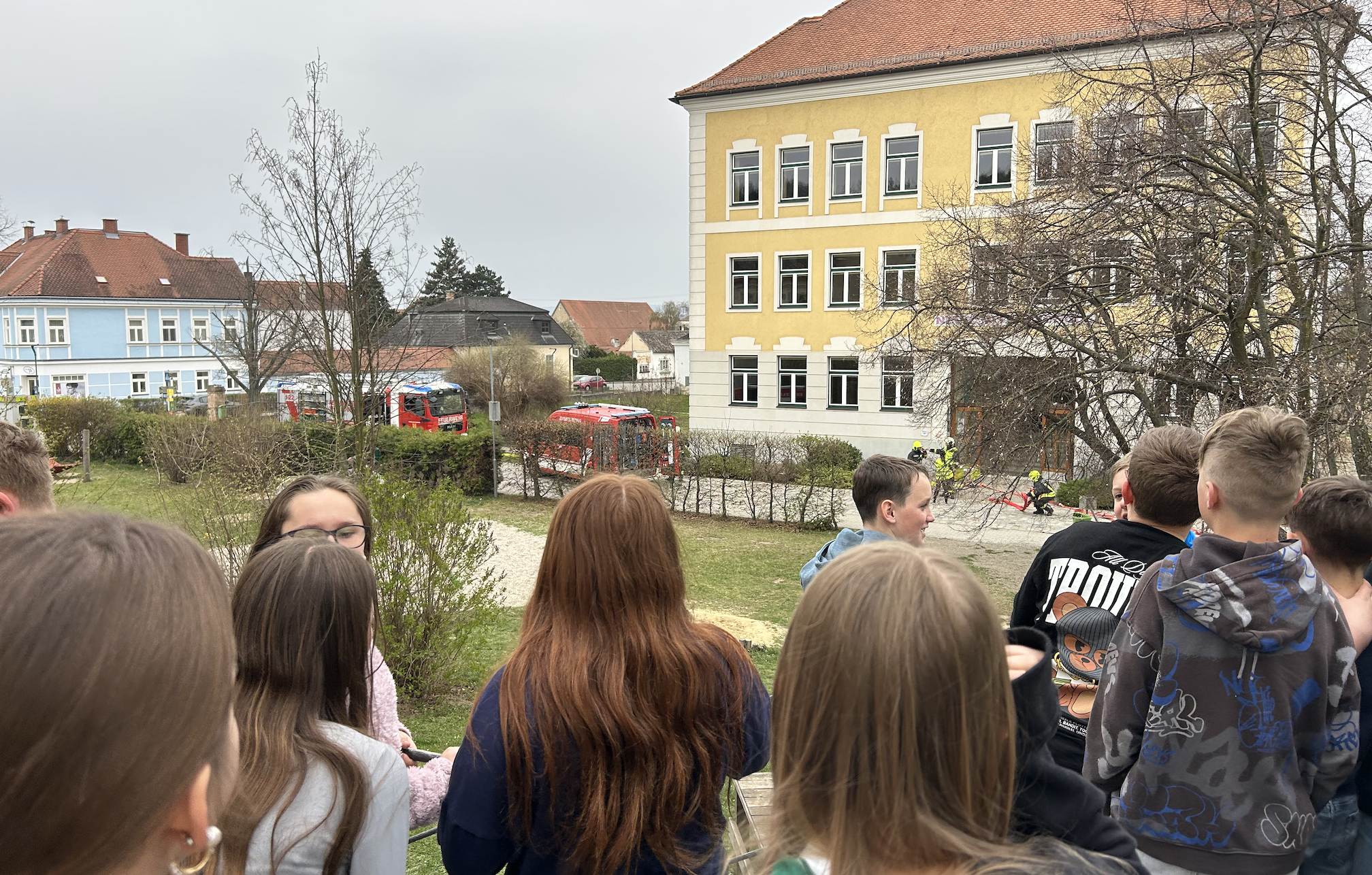 Für besondere Spannung sorgte ein inszeniertes Szenario: Drei SchülerInnen blieben absichtlich im Schulgebäude zurück und mussten von der Feuerwehr gesucht und gerettet werden. So konnten alle hautnah miterleben, wie ein Einsatz im Ernstfall abläuft und wie professionell die Rettungskräfte vorgehen.